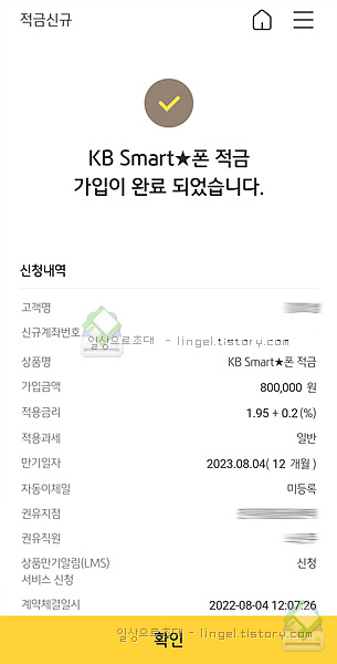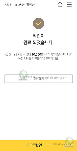 스마트폰 적금 가입이 완료되었습니다.