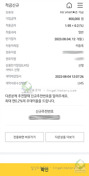 추천번호는 꼭 추천하시고 가입해야 기본 0.1% 추가 금리를 받고 시작할 수 있습니다.