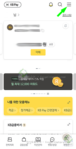 원래는 이렇게 복잡하지 않았는데 뱅킹 앱이 업데이트되면서 불편하게 바뀌었네요.