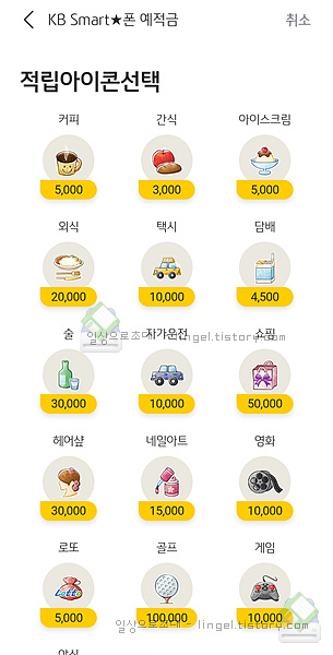 "아이콘적립"버튼을 눌러 나머지 금액을 채워줍니다. 20회를 적립해야 우대이율이 적용됩니다.