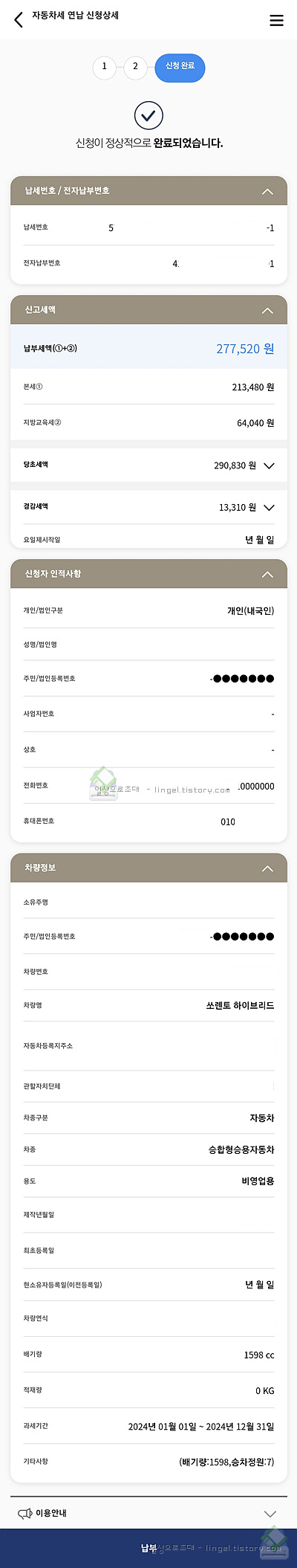 신청은 최초 1번만 하면 다음년도에도 자동으로 연납신청되어있습니다.