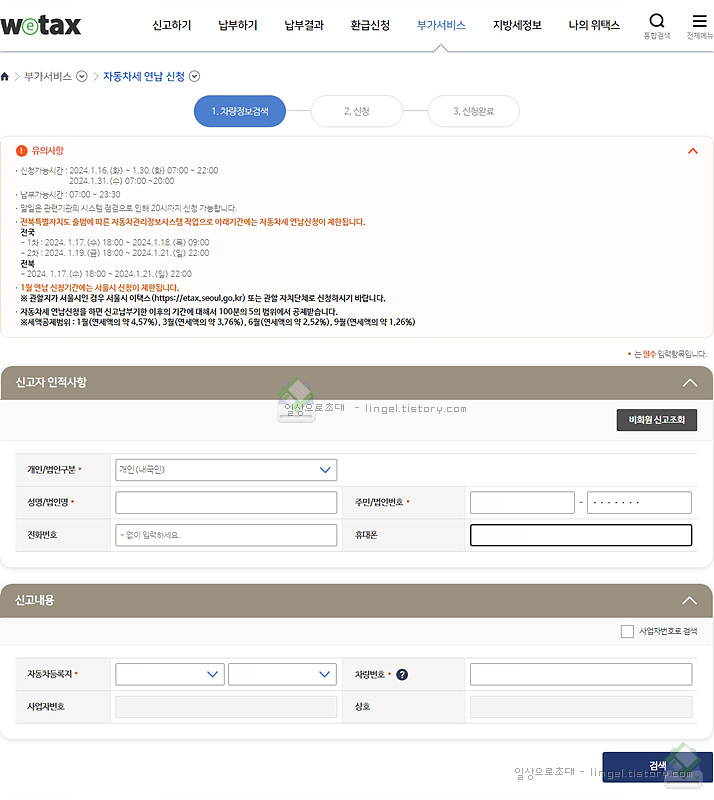부가서비스 - 자동차세연납 - 신청