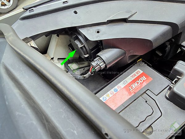 우선 본네트를 열고 헤드램프 뒷 뚜껑을 돌려서 열어줍니다.