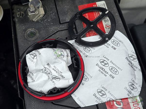 레이 헤드램프 내부에 습기가 찬 경우입니다.