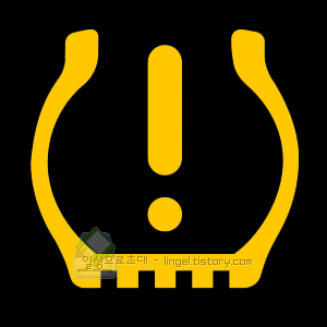 타이어 공기압 경보등(TPMS)입니다. 공기압이 부족할때 켜집니다.