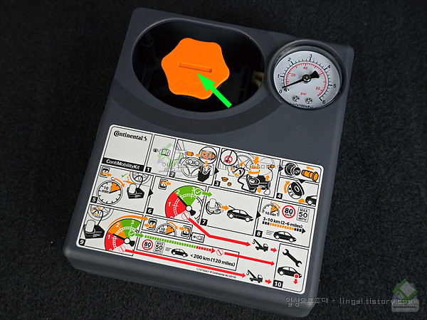 오른쪽 흰 통은 (실란트) 비상시에만 사용하는 임시 펑크수리키트입니다.
