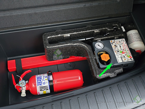 순정으로 출고된 타이어 공기압 주입장치(컴프레셔)입니다.