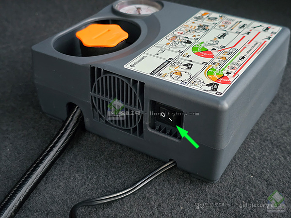 (화살표 표시) 타이어 공기압 주입장치(컴프레셔)입니다.