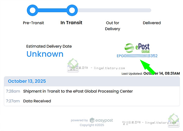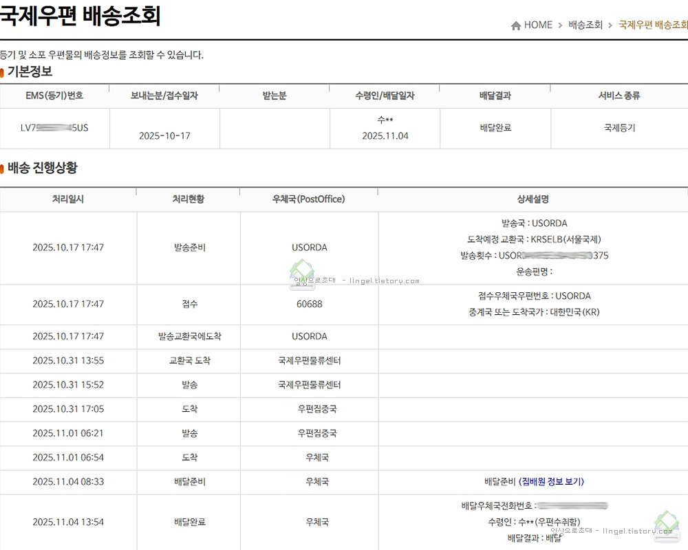 시간이 흘러 동일한 송장번호로 우체국에서 조회합니다.