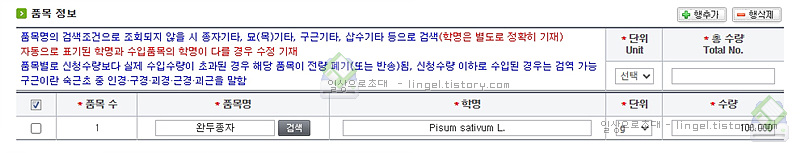 모르면 학명을 찾아서 넣어줍니다. 학명을 잘못적게 되면 검역단계에서 폐기되기도 합니다.