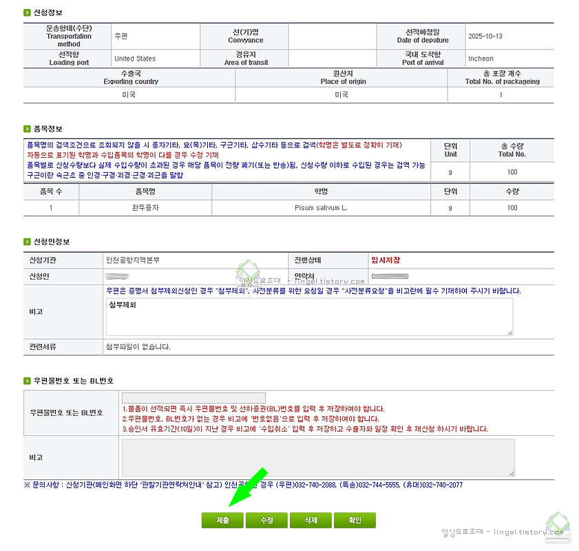 저의 경우는 완두콩 종자를 수입하고자 합니다.