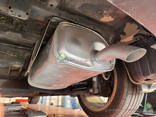 차량 출고 후 약 7년간 사용한 머플러입니다.