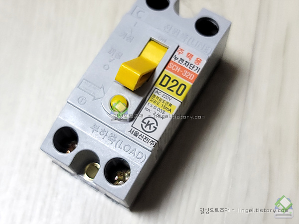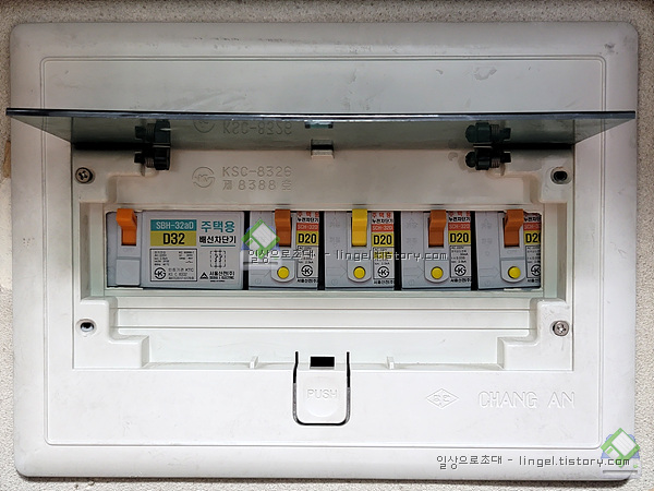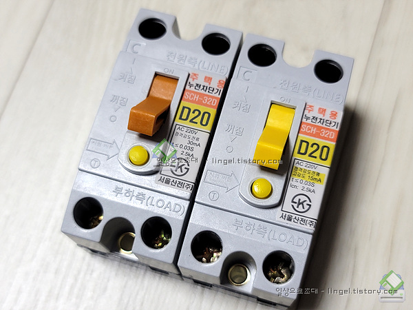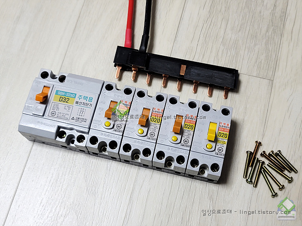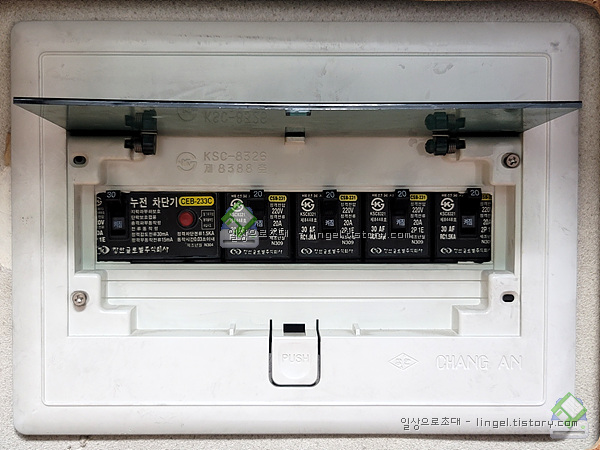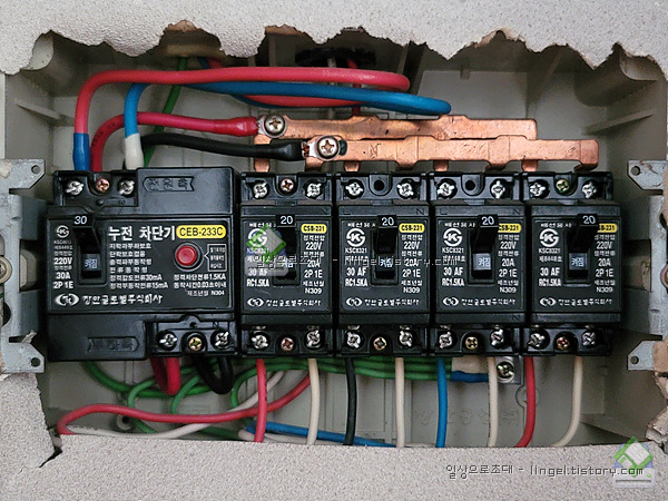 메인은 배선용 차단기 30A, 나머지는 누전차단기 20A입니다.