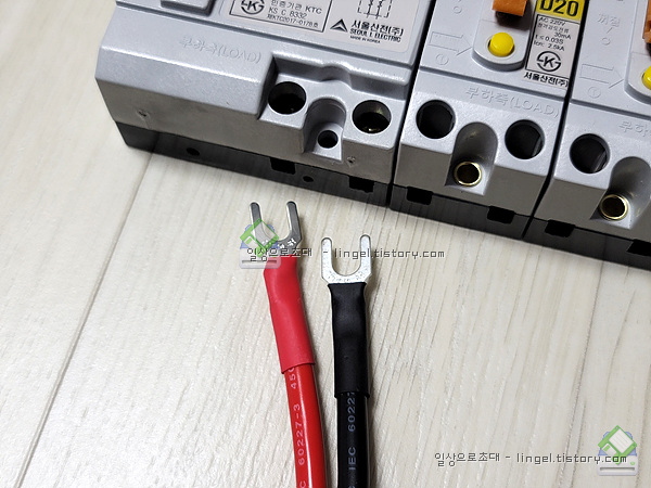 차단기에 끼울수가 없어서 단자는 잘라내었습니다.