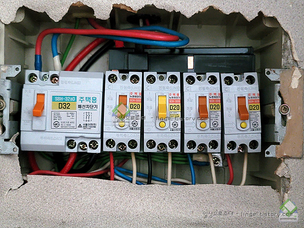 하지만 이제는 메인은 배선용 차단기이고, 나머지는 누전차단기로 법이 바뀌었습니다.