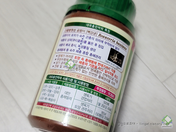 미생물(백강균)을 이용하여 해충을 죽이는 친환경 농약입니다.