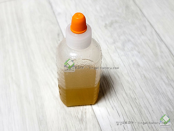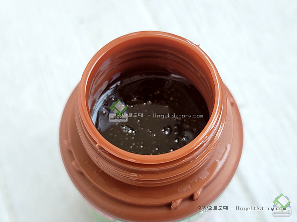 잘 흔들어서 뚜껑을 열어보니 약간 걸쭉한 느낌의 액체네요.