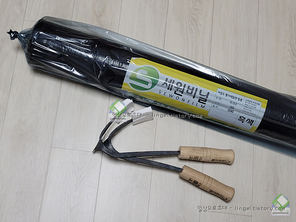 구매했던 멀칭비닐과 장인이 만든 호미가 도착했네요.