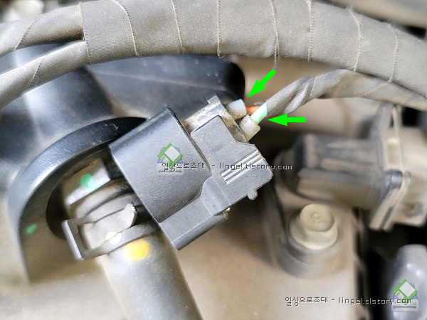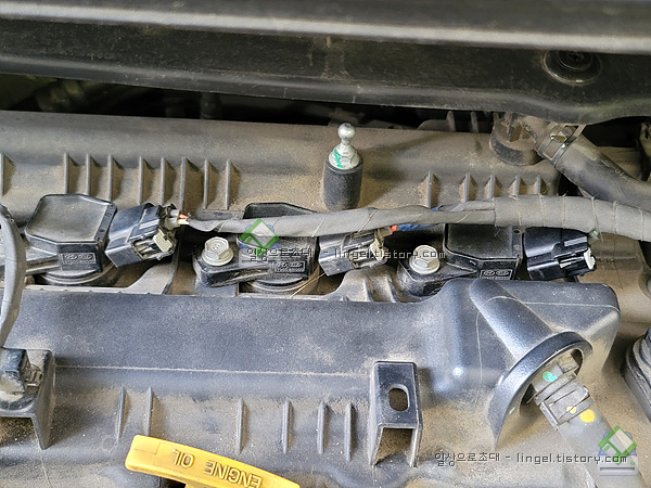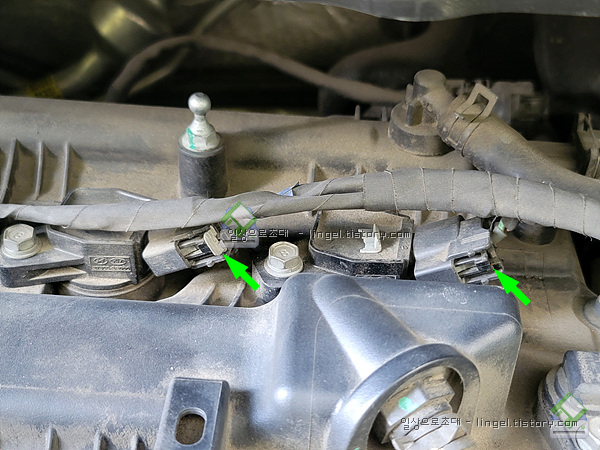 점화코일 커넥터는 엔진의 뜨거운 열기에 노출되있어서 회색의 락키가 부러지는 경우가 많습니다.