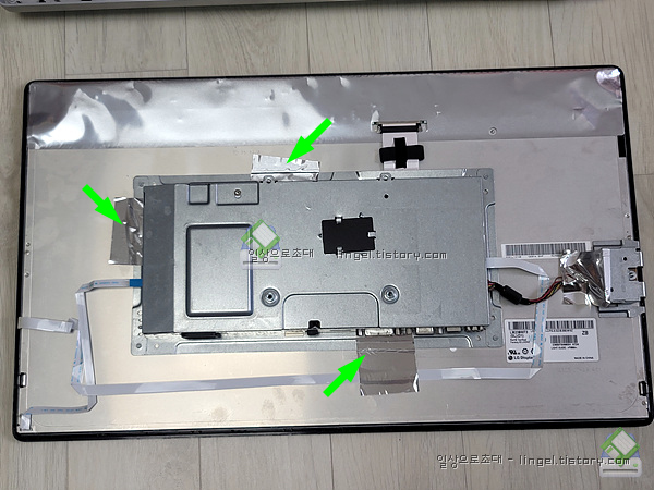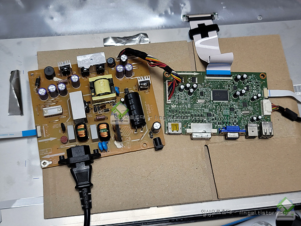 파워보드와 AD 보드는 커버에 붙어있으며 커버는 패널과 tape로 붙어있습니다.