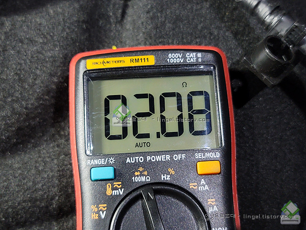 정상품의 양단 저항입니다. 15옴 정도입니다.