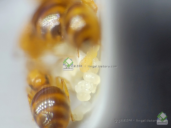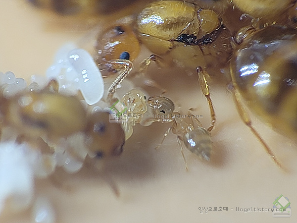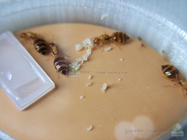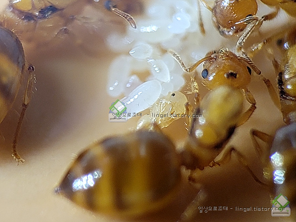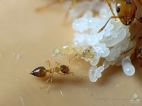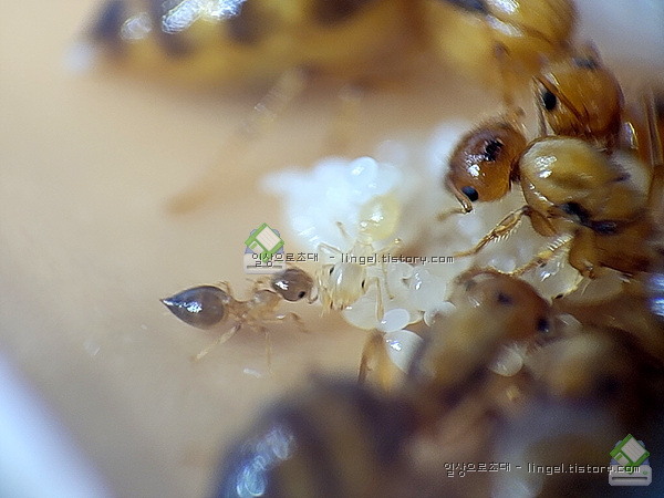둘째 일개미는 알과 애벌레 관리를 주로 하고있습니다.