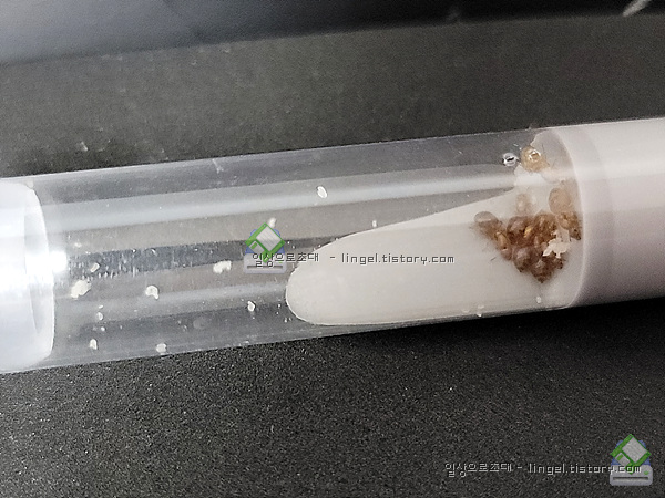 검은 물질의 의문이 풀렸습니다. 개미의 배설물이었네요.