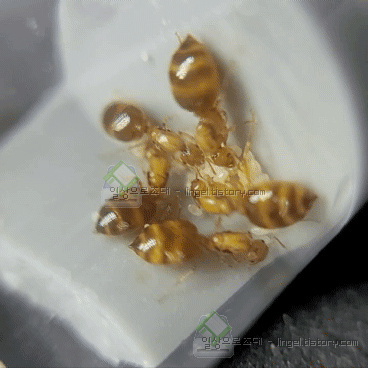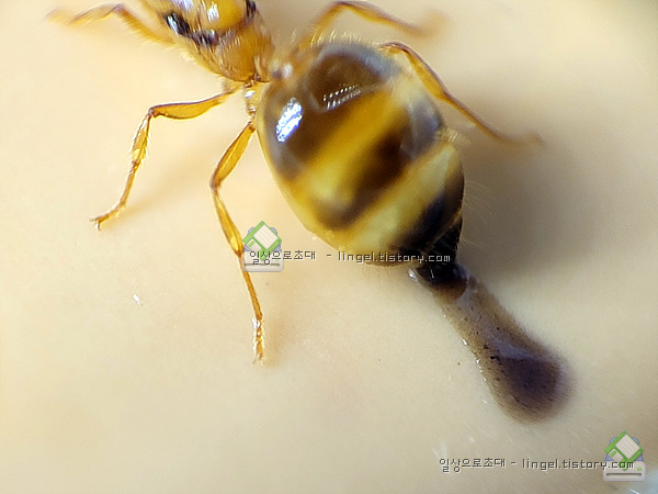 셋째 일개미가 될 가능성이 높은 나용입니다. 꼬리쪽부터 노르스름하게 색이 변개하고 있습니다.
