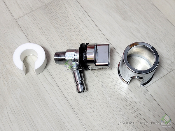 수전부품의 구성입니다. 커버는 그냥 끼우는 형태입니다.
