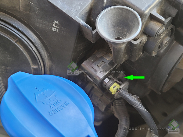 헤드램프 뒤쪽에 위치해 있어서 헤드램프 탈거없이 간단히 교체할 수 있습니다.
