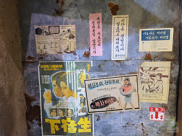벽에 붙은 각종 표어와 광고들.