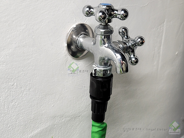 원터치 수도꼭지의 경우는 매직호스를 바로 연결이 가능합니다.