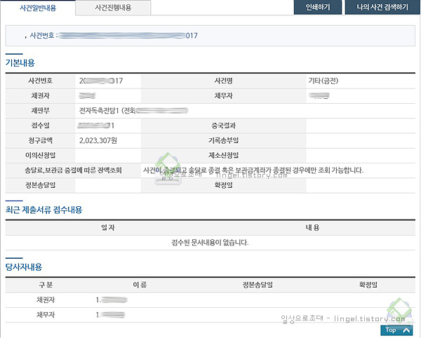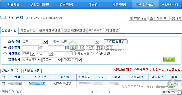 나의 사건에서 사건번호(~차천~ )가 생성되는것도 확인이 가능합니다.