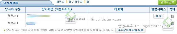 채권자와 채무자의 정보가 입력되었습니다.