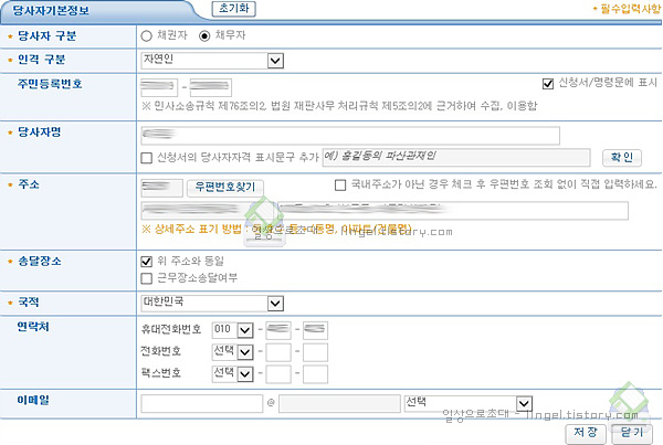 당사자 기본정보를 입력합니다.