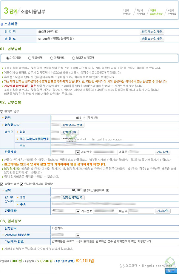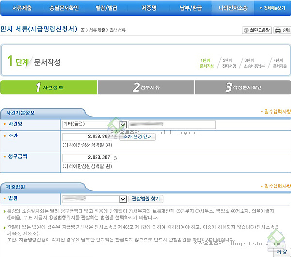 소송에 필요한 금액은 자동으로 계산되어진다는 점이 편리합니다.