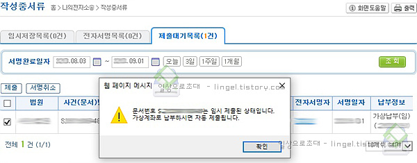 "임시제출"버튼을 누릅니다.