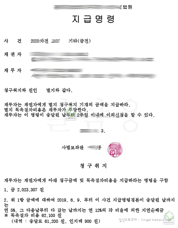 지급명령 신청을 했고, 하자가 없다면 채무자에게 지급명령서가 송달됩니다.