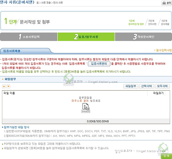 나의 사건에서 "소송서류제출"을 누릅니다.