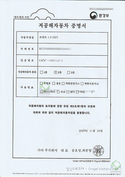 저공해 차량에 해당하는 경우 저공해자동차 증명서도 필요합니다.