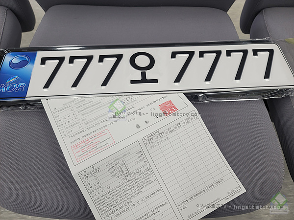 번호판값을 지불하면 이렇게 새로운 번호판을 발급받게 됩니다. 봉인도 잘 챙겨야 합니다.