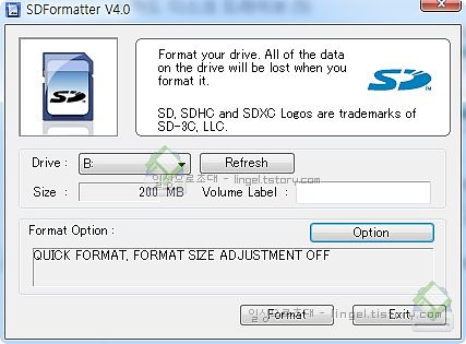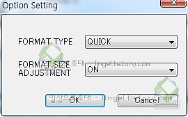- ON : 포맷의 용량을 조절함 (포맷된 용량에 문제가 있는경우 사용)