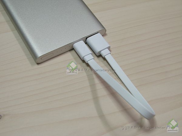 왼쪽은 USB케이블이 있으며 오른쪽에는 보조배터리 본체가 들어있습니다.