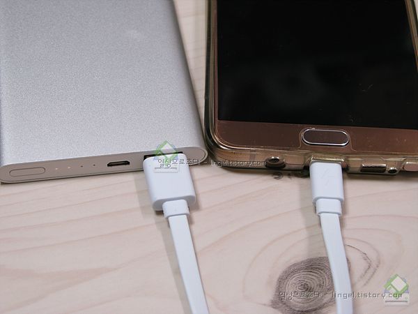 이렇게 휴대폰 등의 기기와 연결하면 자동으로 전원이 켜져서 충전을 시작합니다.