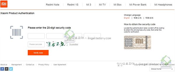 정품확인 사이트는 http://chaxun.mi.com/ 입니다.