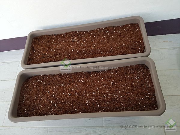 이니스 화분 2개에 15L 정도의 흙을 사용하니 적당히 차네요.
