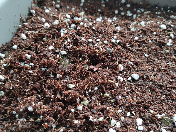 흙의 부피가 약간 줄어드는데 적당히 흙을 더 부어주고 또 흙을 적셔줍니다.