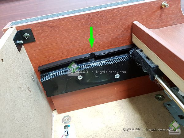 건반덮개 좌우가 맞지 않는경우는 이 홈을 통해 기어위치를 살짝 바꿔주면 됩니다.